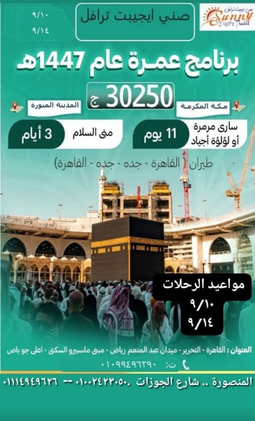 على بركة الله افتتحنا باب التسجيل لموسم عمرة المولد النبوي الشريف 2023 م 1445 هـ نسعى دائما لإرضائكم بأرقى خدمات العمرة و أفضلها .